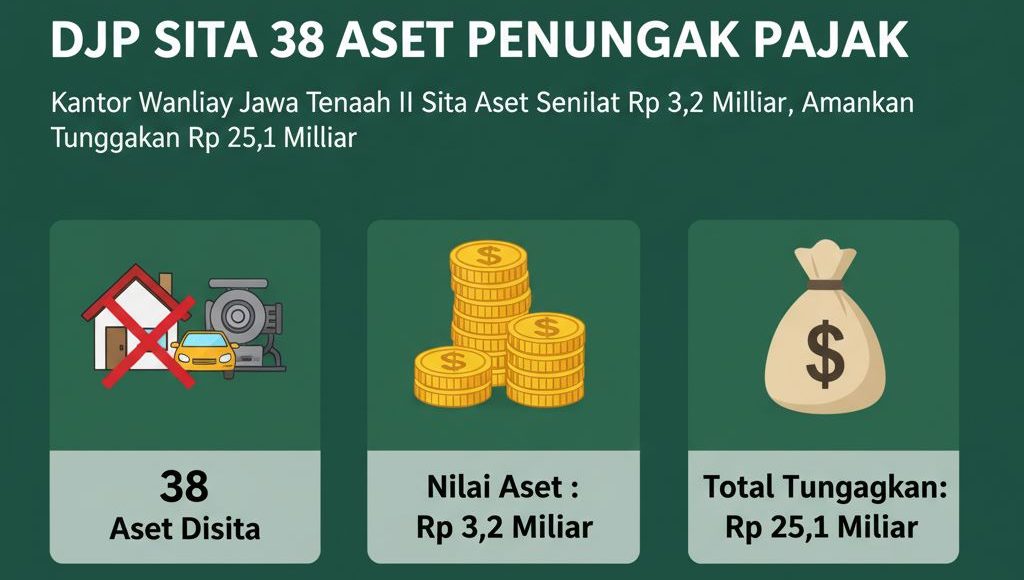 Direktorat Jenderal Pajak (DJP) Kantor Wilayah Jawa Tengah II sukses menyita 38 aset dari 24 penunggak pajak senilai Rp 3,2 miliar sebagai jaminan tunggakan mencapai Rp 25,1 miliar. Aksi “Pekan Sita” ini menargetkan kepatuhan pajak di wilayah Eks Keresidenan Surakarta, Kedu, dan Banyumas.